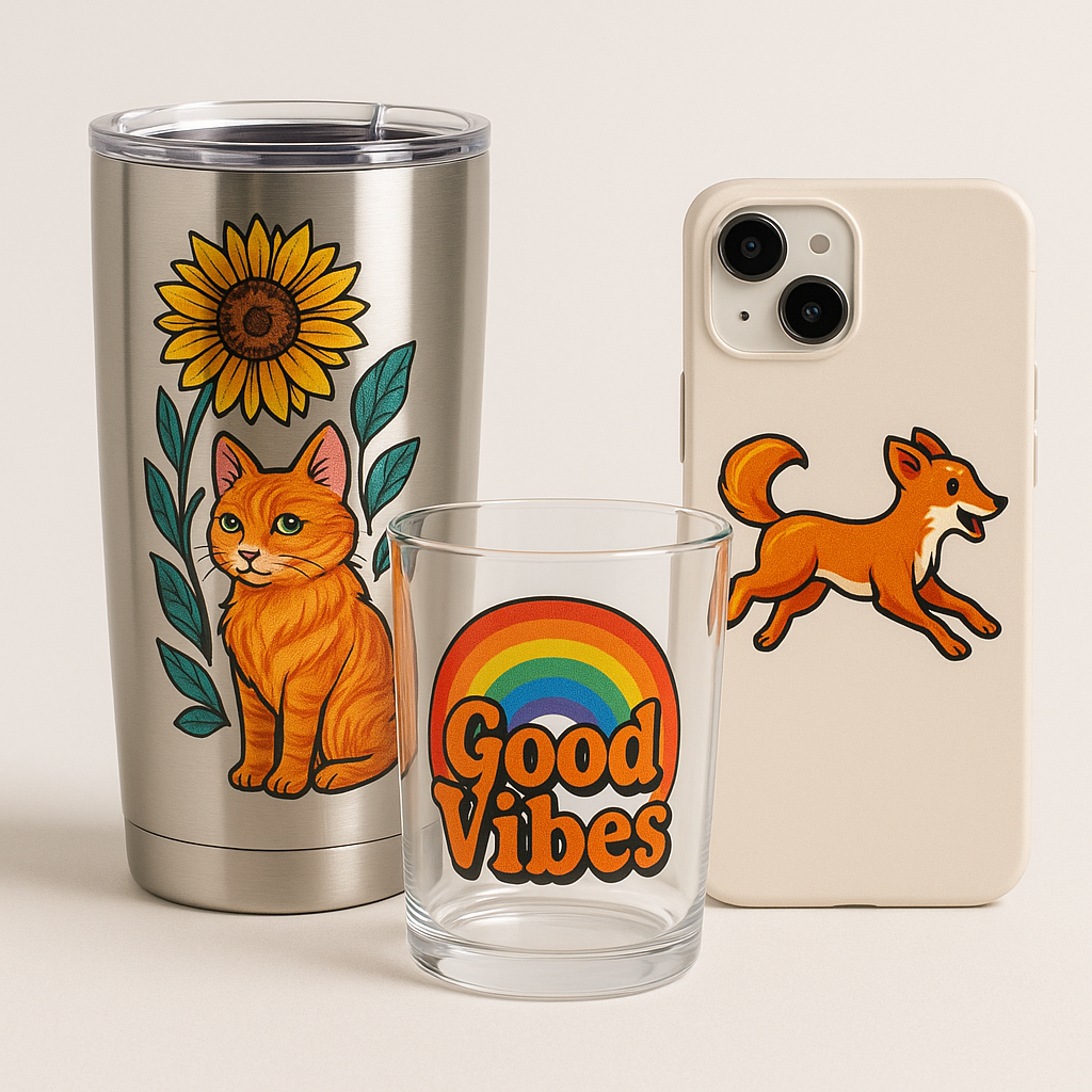 Experience vivid, long-lasting UV DTF transfers with Epic Marks. Our advanced 9-color printing creates rich, smooth colors and sharp details perfect for hard surfaces like glass, wood, and metal. These peel-and-stick prints are waterproof, scratch-resistant, and easy to apply—no heat press or extra tools needed. Ideal for crafters and businesses looking for durable, professional-quality designs that stand out.